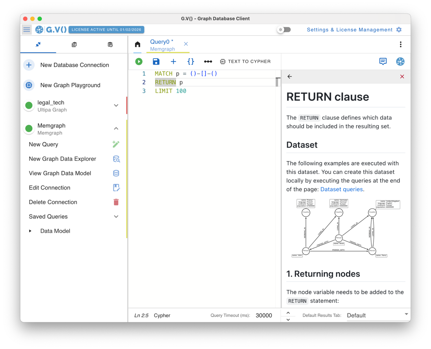 G.V() 3.40.94 Release Notes: Ultipa Graph support, Embedded Cypher Documentation