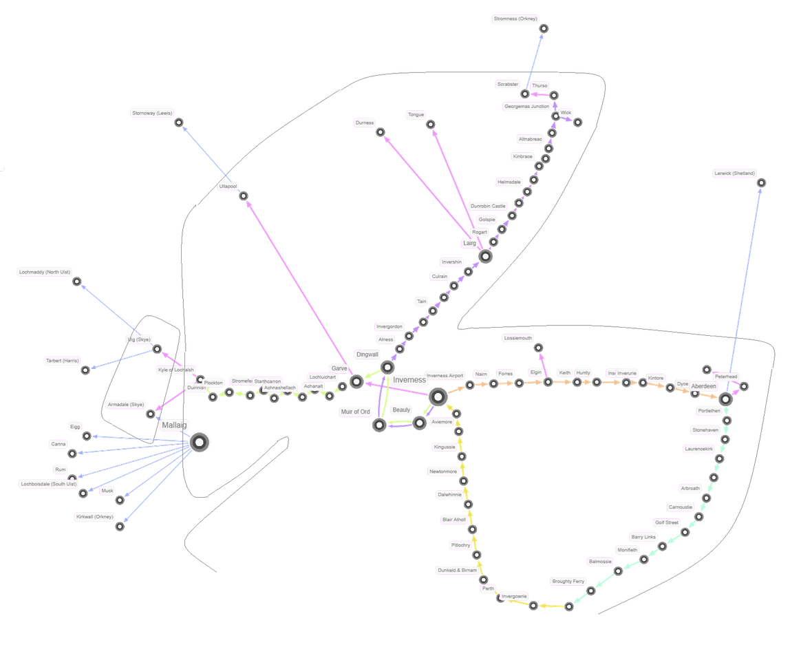 Of course public transport data is typically publicly available, so you’re free to map a different region if you like, but we expect you’d rather not transcribe any routes by hand! To save you time you can grab a copy of our precompiled files for northern Scotland via our GitHub.