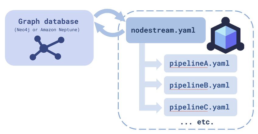 In Nodestream, you define YAML configuration files that map and transform various data sources into data ingestion pipelines for your graph database.