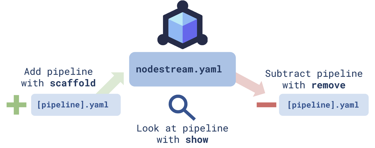 Since Nodestream follows such a simple structure, adding and removing pipelines is straightforward. You just adjust your available .yaml files, and edit the configuration file accordingly.